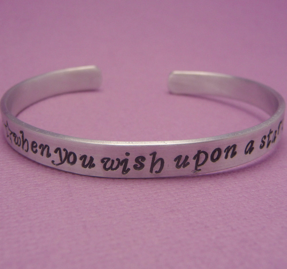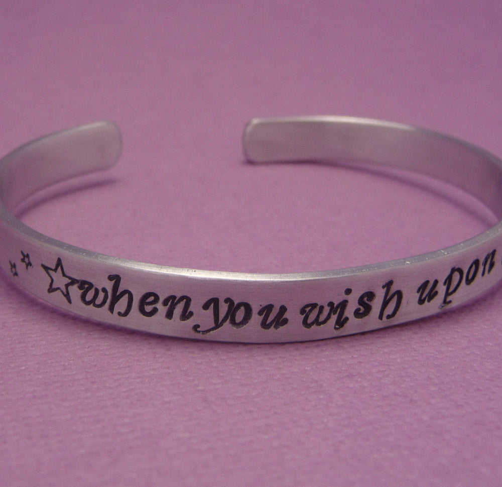 Disney Inspired - When You Wish Upon A Star - A Hand Stamped Bracelet in Aluminum or Sterling Silver