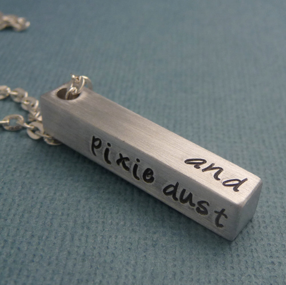 Peter Pan Inspired - Faith, Trust and Pixie Dust - A Hand Stamped Aluminum Bar Necklace