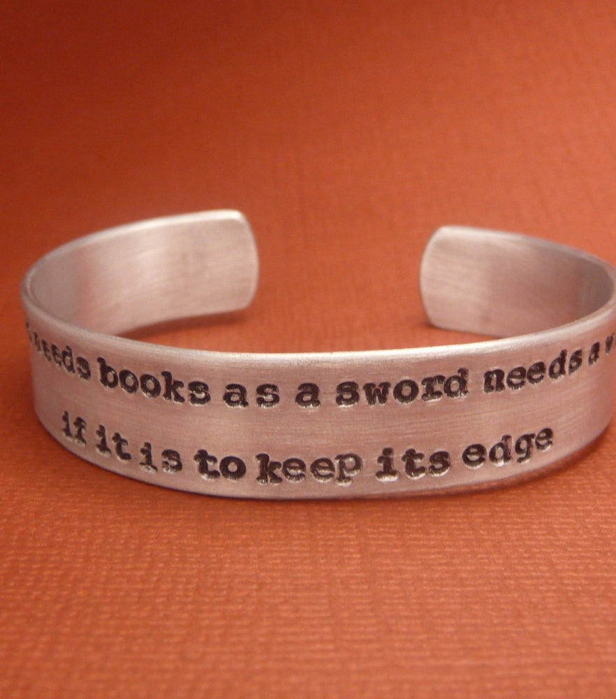 Game of Thrones Inspired - A Mind Needs Books As a Sword Needs a Whetstone... - A Hand Stamped Aluminum Bracelet