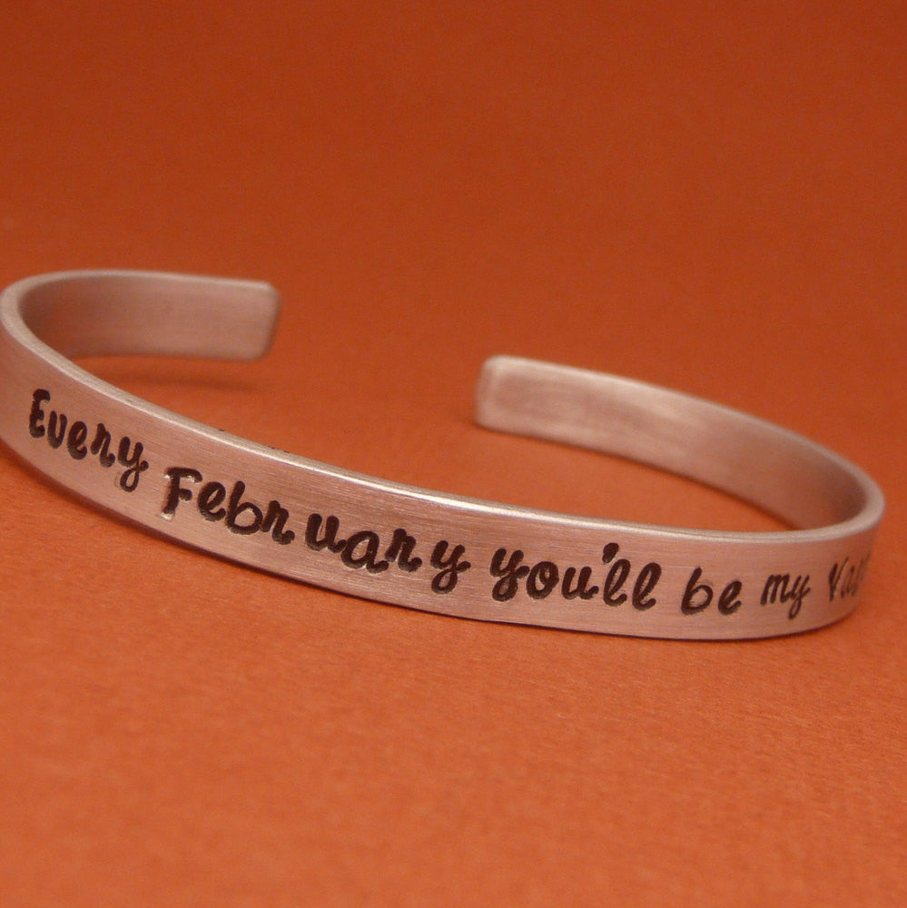 Glee Inspired - Every February You'll Be My Valentine - A Hand Stamped Bracelet in Aluminum or Sterling Silver