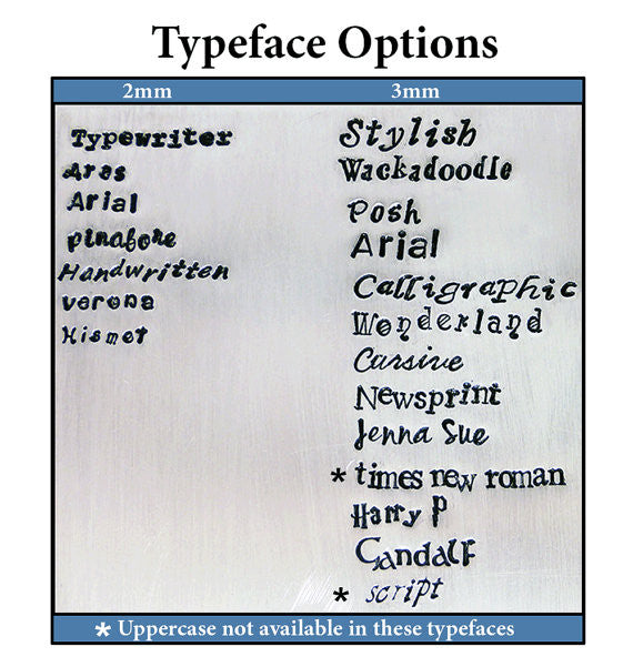 CUSTOMIZATIONS: Because these bracelets are made to order they are fully customizable with any of the fonts or design stamps you see in the example photos. They can accommodate up to 10 characters in the 3mm fonts, or 13 characters in the 2mm fonts. If you’d like to customize your order go ahead and just leave me a note in the “Message To Seller” field when you check out, and I’ll get to it as soon as I can. PLEASE NOTE: This listing includes stamping on ONE SIDE ONLY.