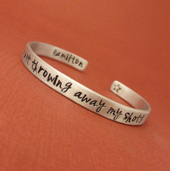 Hamilton Inspired - I'm not throwing away my shot! - A Double Sided Hand Stamped Bracelet in Aluminum or Sterling Silver