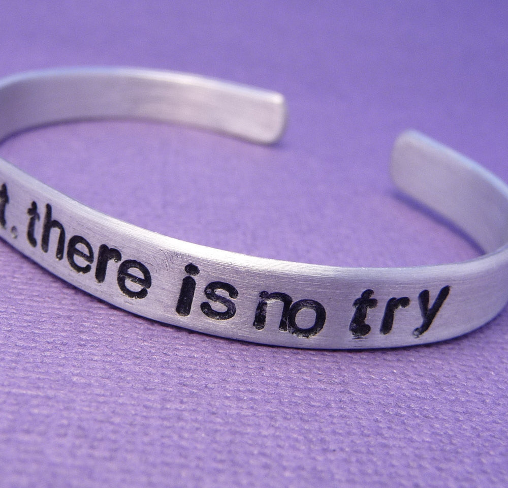 Star Wars Inspired - Do Or Do Not. There Is No Try - A Hand Stamped Cuff Bracelet in Aluminum or Sterling Silver