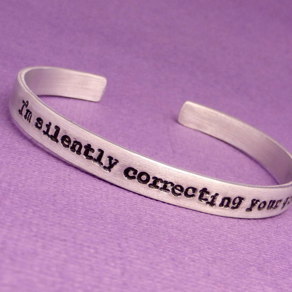 Grammar Police - I'm silently correcting your grammar - A Hand Stamped Bracelet in Aluminum or Sterling Silver