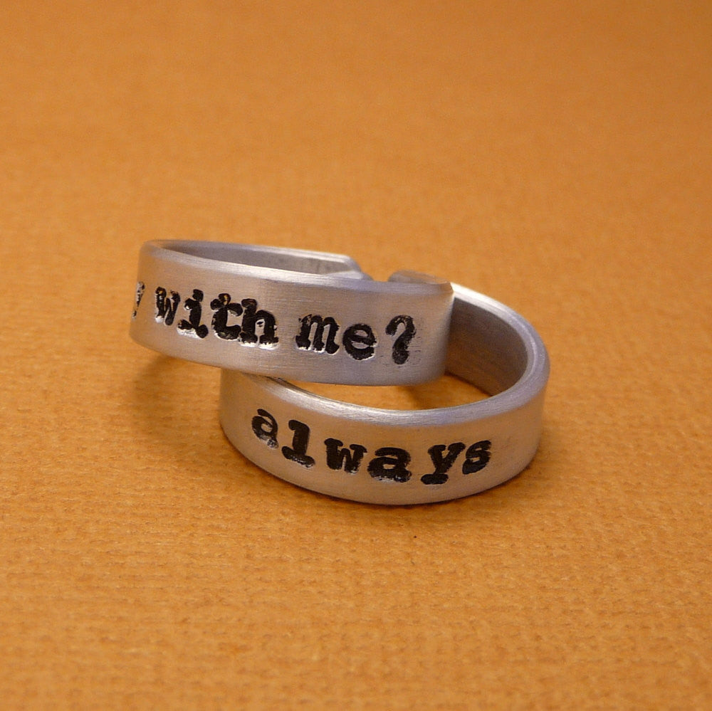 Hunger Games Inspired - Stay With Me and Always - Hand Stamped Aluminum Rings