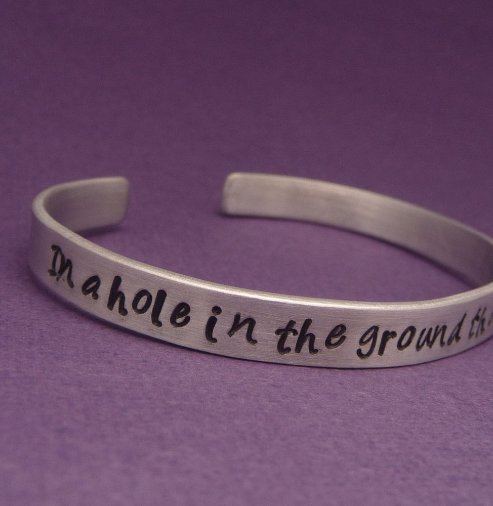 Tolkien Inspired - In A Hole In The Ground There Lived A Hobbit - A Hand Stamped Bracelet in Aluminum or Sterling Silver